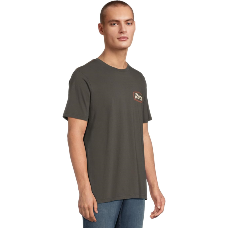 Washed and worn, the RVCA Sign Post Pigment Tee offers a broken-in quality to your essential tee. Cut with a heritage slim fit, this pull-on style T-shirt has RVCA''s trademark red stitch at the shoulders. Made from premium cotton jersey with a pigment dye, the solid tee takes on a vintage look and feel with a crew neck, short sleeves, and a straight hem.