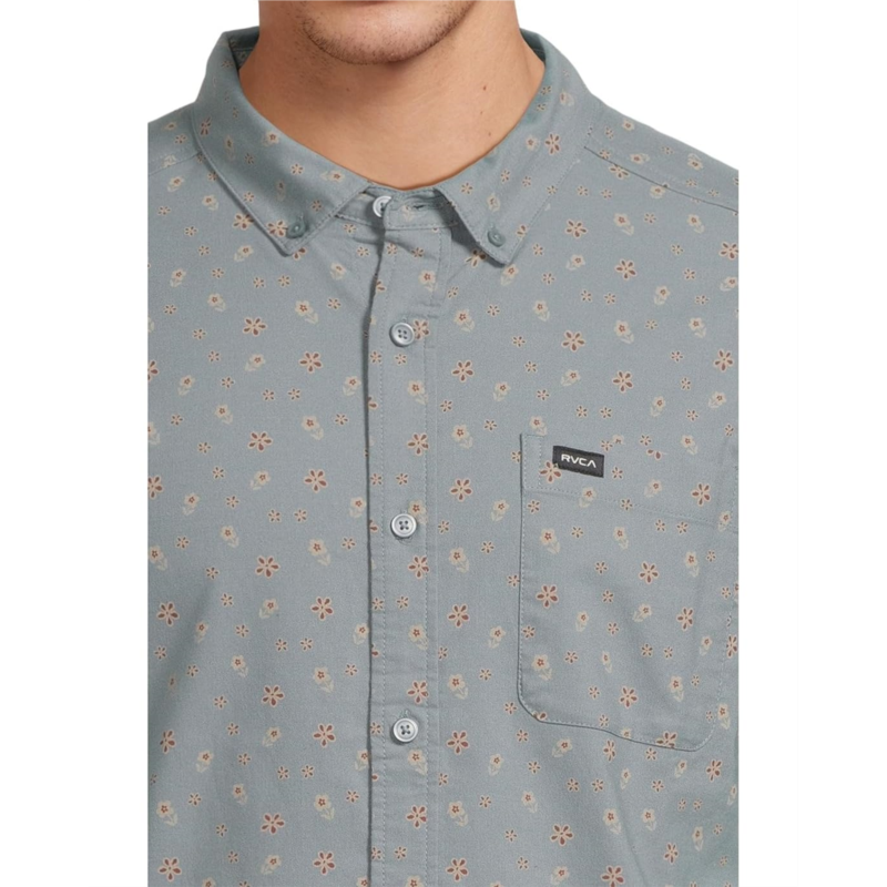 Pairing a slim fit and soft blended cotton fabric, the RVCA That''ll Do Print Short Sleeve shirt is an effortless look for day or night. This button-up shirt features a collared neckline, a single chest pocket, and a scalloped hem for added detail.