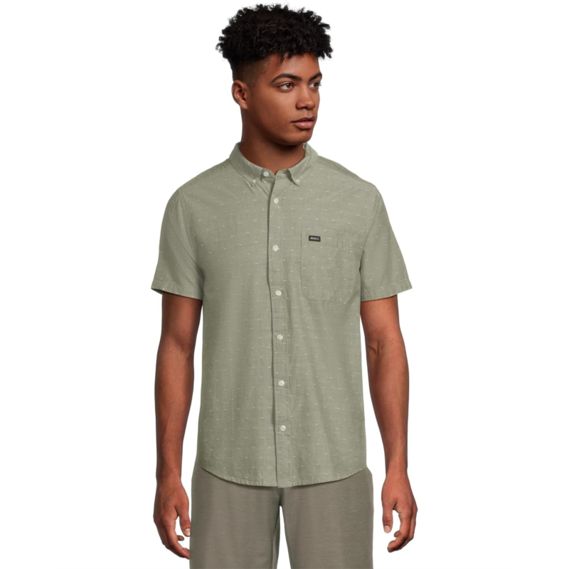 The RVCAThat''ll Do Dobby Short Sleeve Shirt, where texture meets tradition. Crafted with a slim tailored fit, this versatile button-up is designed to elevate your everyday look without sacrificing comfort. The collared neck and button-front closure create a clean, structured finish, while the woven dobby fabric adds a subtle layer of texture that sets it apart from standard short sleeves. A chest pocket detailed with the RVCA label ties in the brand''s signature minimal edge, making it a must-have for both casual hangs and polished nights out. Designed to balance laid-back ease with refined appeal, this short sleeve shirt is proof that less is more.