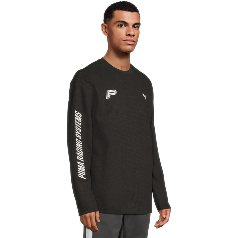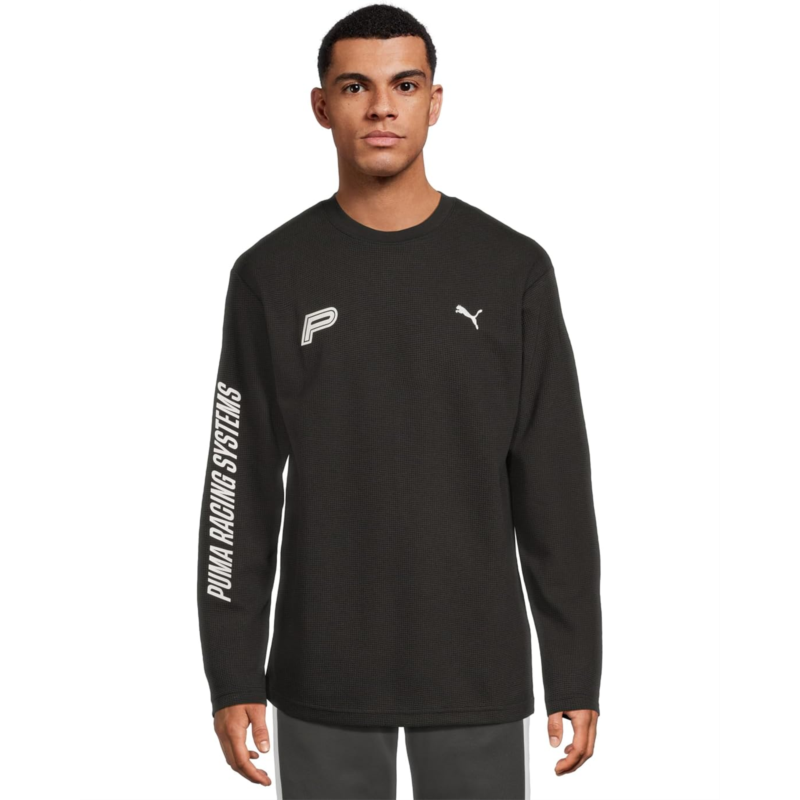 This is the FUTURE.PUMA.ARCHIVE. The PUMA Future Archive Waffle Relaxed Long Sleeve Tee merges the essence of our past with the boundless edges of our future. Retro, yet progressive, it is here to make a statement. Effortlessly on-trend, this long-sleeve tee combines a crew neckline and drop shoulder design to create a casual streetwear look that blends comfort with style. It offers a comfy, non-restrictive fit that allows freedom of movement. Crafted from high-quality waffle knit fabric for a cozy and comfortable feel, this casual tee highlights Motorsport-inspired designs with a rubber print letter P graphic, Faster Systems Beyond The Limits at the center back, and Puma Racing Systems on the right sleeve. It also features an embroidered PUMA Cat logo on the upper left chest.