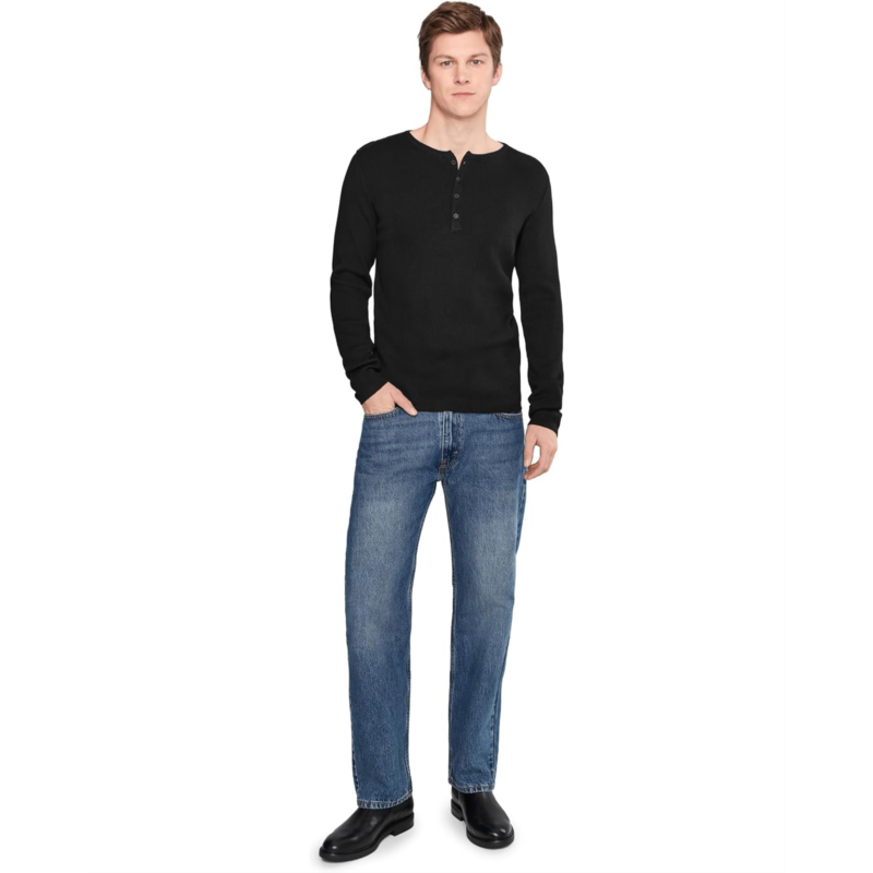 Show off a sleek and sophisticated appeal wearing the John Varvatos Javis Henley Top. The pull-on style top features a Henley neck, a quarter-button closure, long sleeves, and a straight hem.
