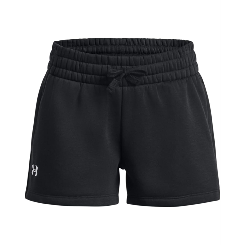 The Under Armour Kids Rival Fleece Shorts are made from a lightweight, ultra-comfortable cotton-blend fleece fabric which keeps you comfy all the time. This pair has a ribbed waistband with an external drawcord for a secure fit. The short-length silhouette ensures comfy wear while you go out for runs! Add these shorts to your activewear collection.