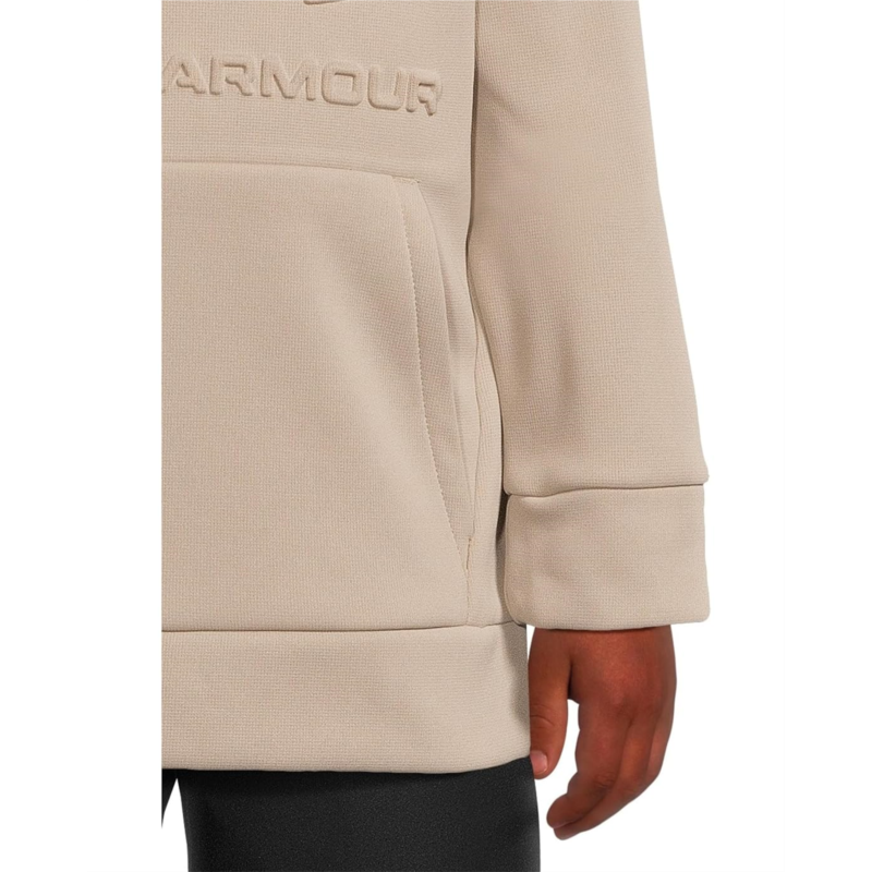 Lightweight and warm, the Under Armour Kids Armour Fleece Embossed Hoodie is crafted from Armour Fleece fabric, which is light, breathable, and stretchy, offering warmth that still lets you move. Its soft inner layer traps heat to keep your kid warm & comfortable. This pullover hoodie is styled with long sleeves, an attached hood, and a straight hem. Featuring an embossed big logo for an elevated look, this hoodie is a great choice for layering and styling.
