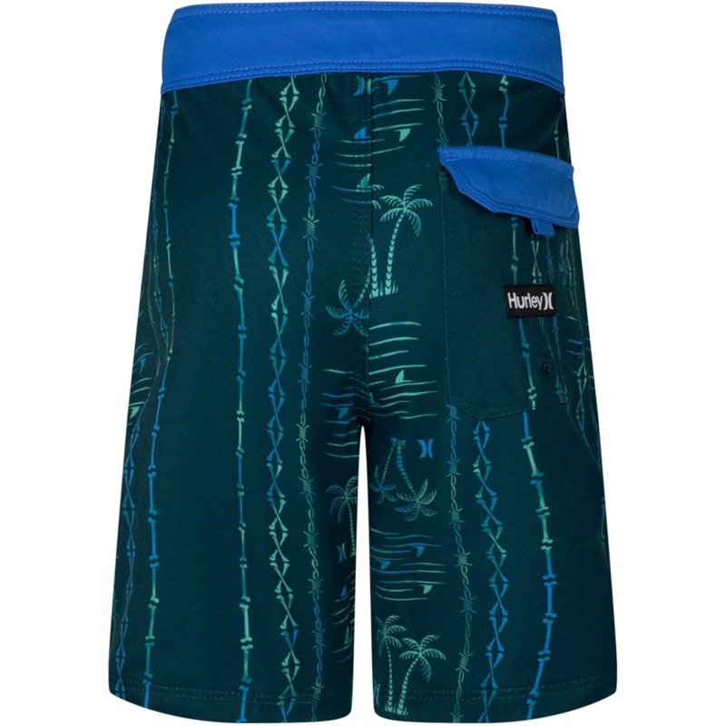 Get the perfect balance of performance and comfort for all you water adventures wearing Hurley Kids Palm Stripe Board Shorts. The shorts are designed with innovative two-way stretch fabric technology for long-lasting wear and moisture wicking quality that keep little ones dry and comfortable while they''re swimming, running, playing on the beach, surfing or just hanging out with friends. The shorts feature an elastic waistband with drawcord closure, striped pattern with graphic print, mesh underpants, and a back pocket for funtionality.