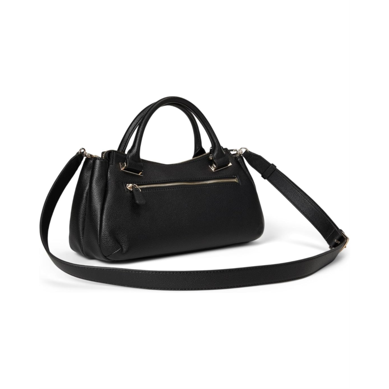 Style your looks by pairing them with the GUESS Evie Triple Compartment Satchel Bag. The triple compartment satchel bag comes in an eco pebble PU construction with a zippered closure for added security. The two top grab handles and detachable crossbody strap allow easy and versatile carrying options. The shiny gold hardware looks exquisite and adds an authentic touch.