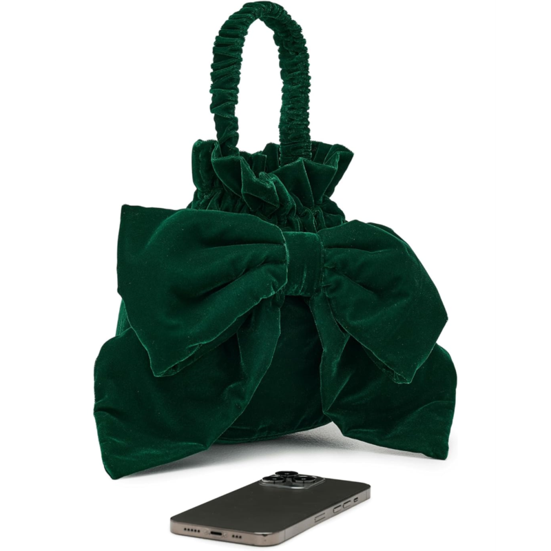 Make a statement with the Free People Belle Velvet Bow Bag. Crafted from a soft velvet fabrication, this bag offers an unstructured pouchkorea, oversized bow applique, smocked elasticated handle, an interior slip pocket, and a detachable strap.