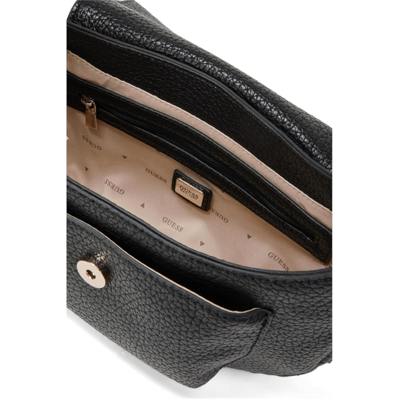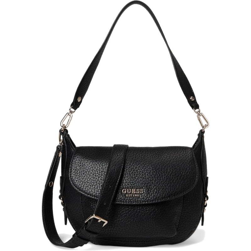 The GUESS Marsha Flap Shoulder Bag features a sleek, structured silhouette with a fold-over flap design and a removable shoulder strap that delivers effortless polish for day-to-evening wear. Crafted from polyurethane material with a textured surface, this shoulder bag features a removable and adjustable crossbody strap and a magnetic closure.