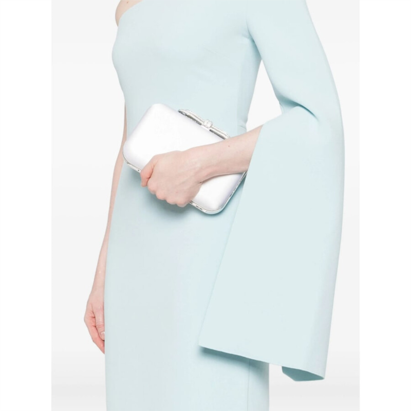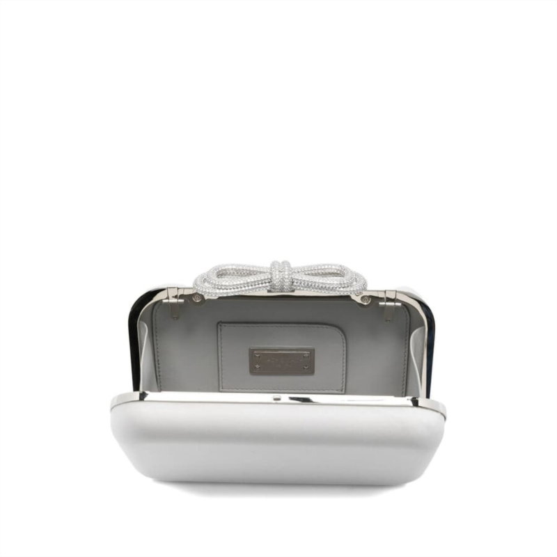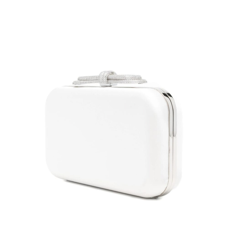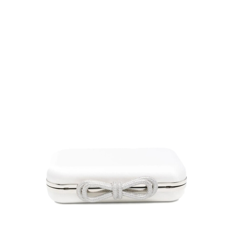 Mach & Mach Ladies Clutch. SKU: MMCBBG0002 WHITE. Color: White. Mach Mach Bag. white crystal-embellished bow detail clasp closure detachable chain strap rectangular shape