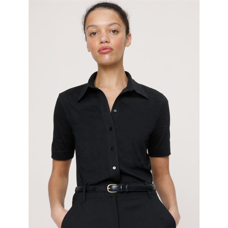 - A classic button-down silhouette made modern with our silky cotton jersey?a favorite for its softness and dressed-up look.