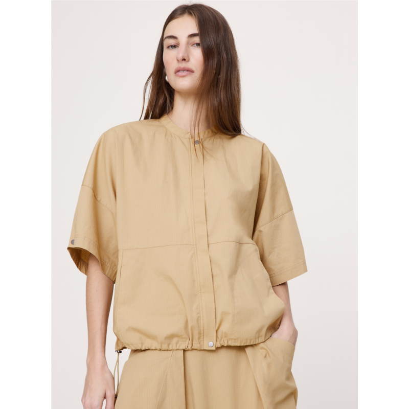 - We love the tension between the femme silhouette and the utilitarian fabric of this top (it''s cut in our cotton ripstop with a signature grid texture). Use the snaps at the cuffs to wear the sleeves to exaggerate the puff sleeves.