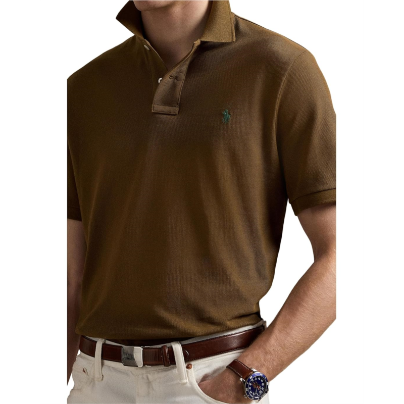 - Maintain your classic style in the Polo Ralph Lauren The Iconic Mesh Polo Shirt. Featuring a ribbed polo collar with a two-button placket, short sleeves with ribbed armband, tennis tail, and a Signature embroidered Pony at the left chest.