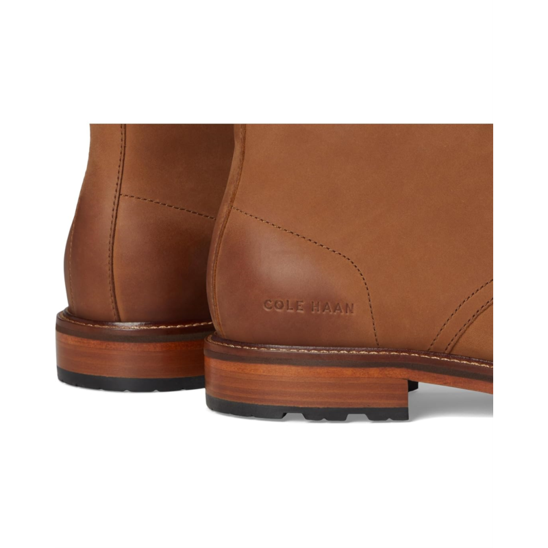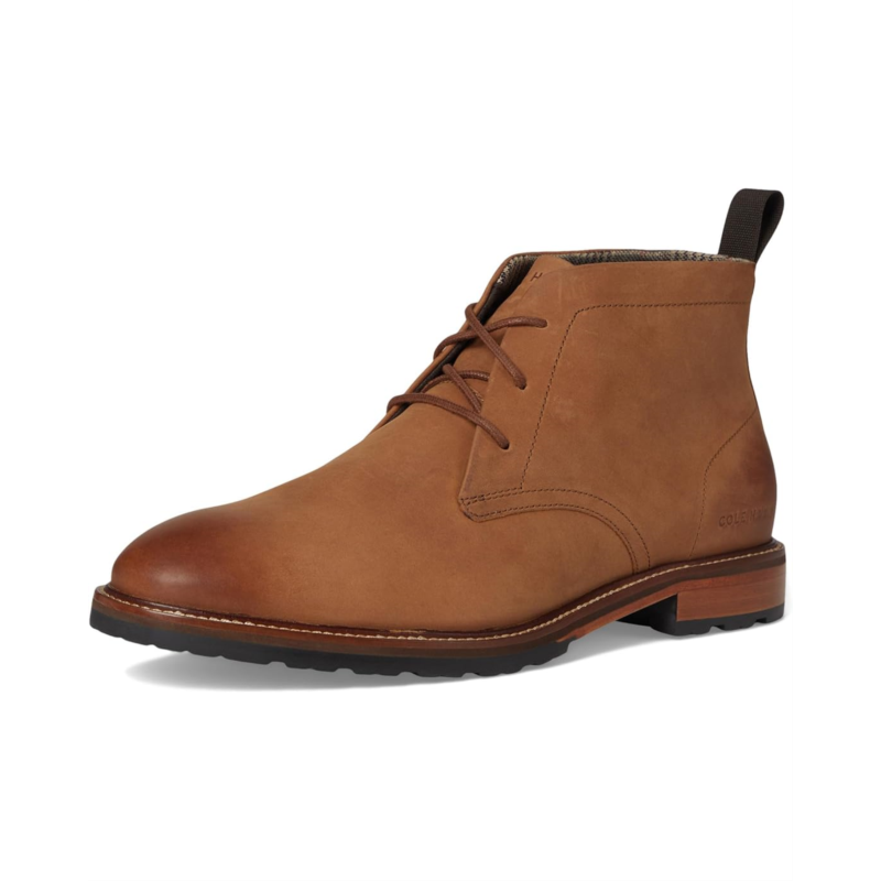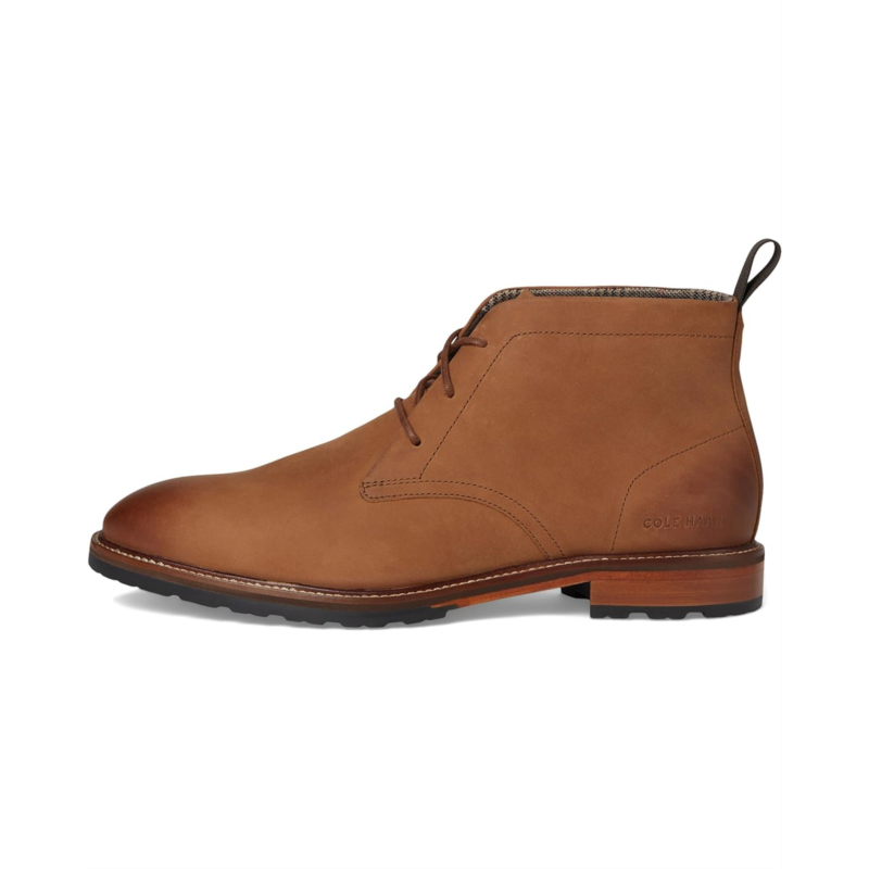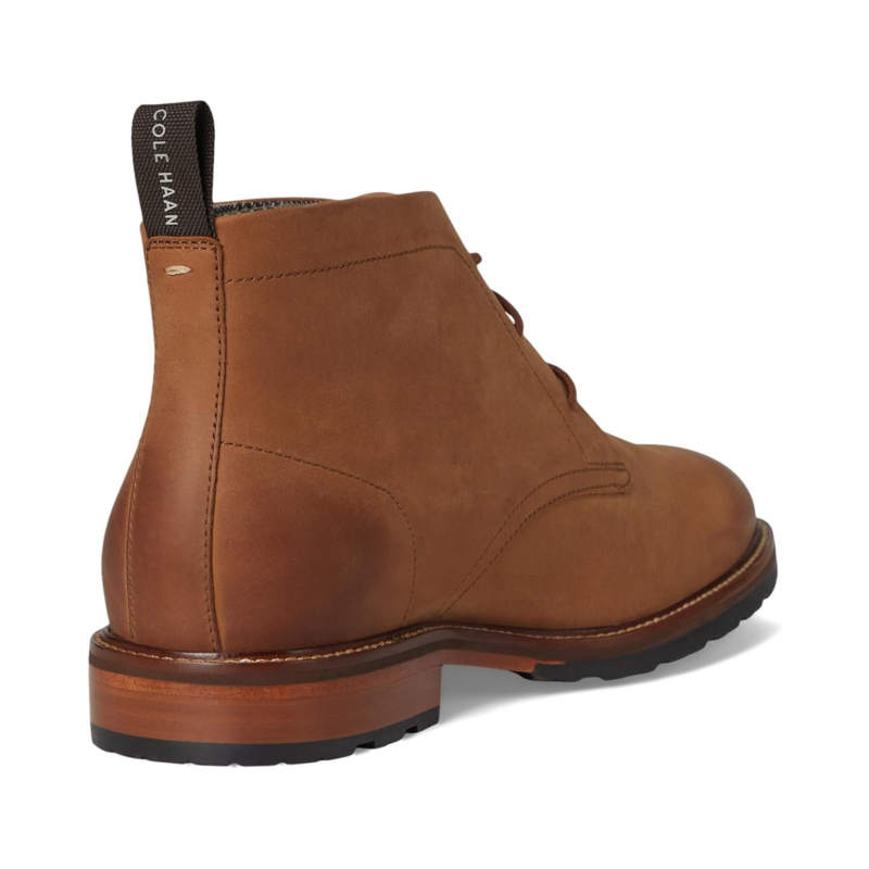 Enjoy a clean design with aesthetic looks by wearing Cole Haan Berkshire Lug Chukka Boots. The water-resistant soft suede leather upper and textile lining make these boots ideal for all-day comfort. It has a polyurethane insole. The clean stitching and rigid overall appearance make it perfect for casual styling. The boots have calf-high shaft and round toe, with pull-on style.