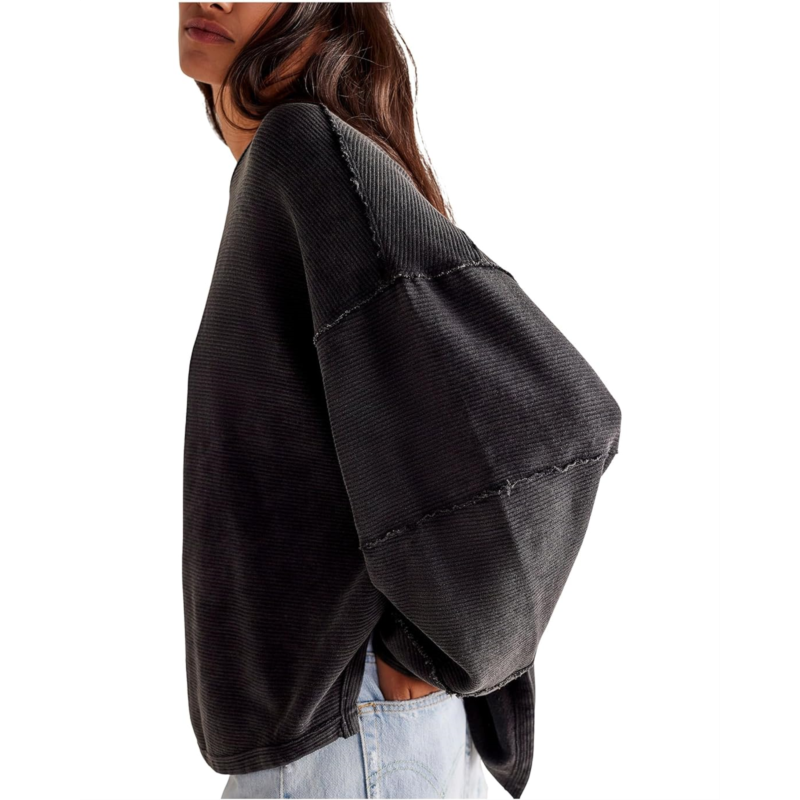 Slouchy, relaxed fit, and pullover style.