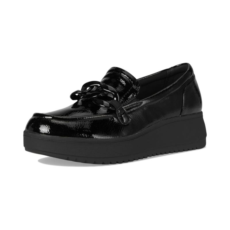 Head to the pathway of panache wearing Clarks Zylah May Flats. The pull-on footwear features leather upper with decorative chain on the vamp and platform wedge heel for added elevation.