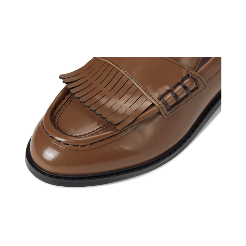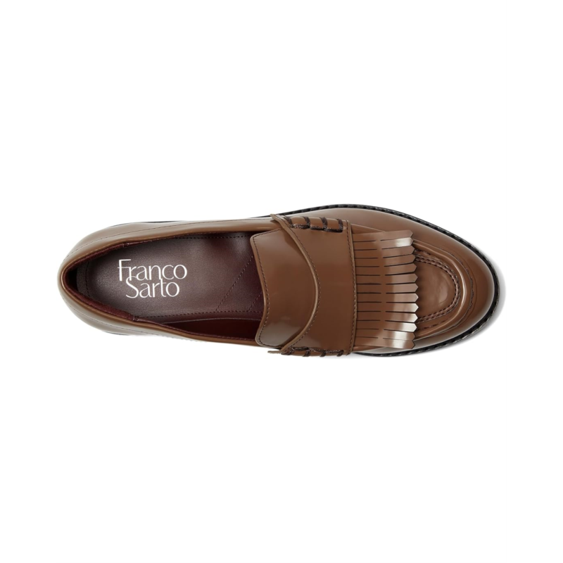 Artistic stitching and fringe detail decorate the vamp of Franco Sarto Alonzo Slip-On Loafers. The slip-on footwear features faux leather upper with stacked block heel and low-top, round toe silhouette.