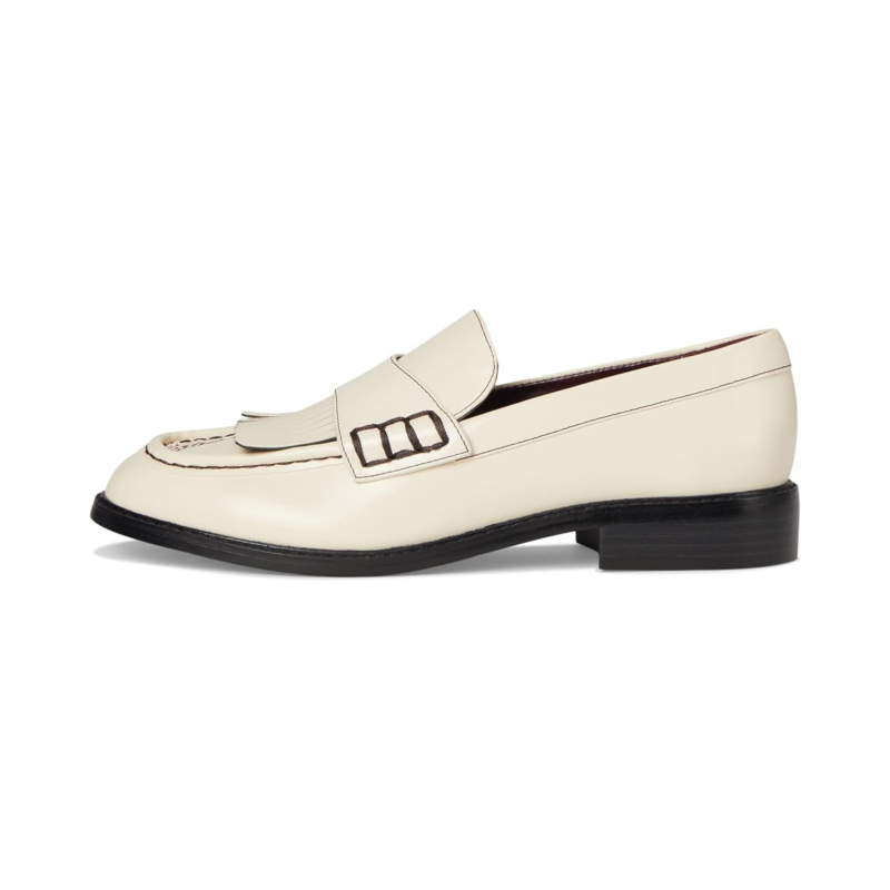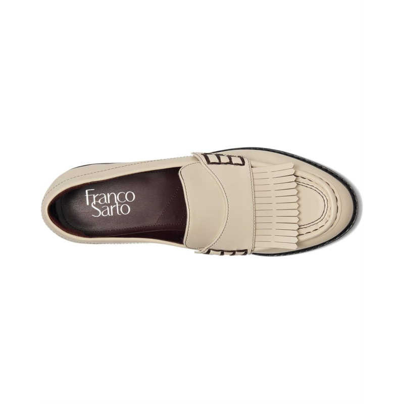 Artistic stitching and fringe detail decorate the vamp of Franco Sarto Alonzo Slip-On Loafers. The slip-on footwear features faux leather upper with stacked block heel and low-top, round toe silhouette.