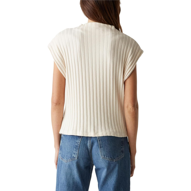 The Michael Stars Nara Mock Neck Top is a stylish day-to-night piece featuring a soft power shoulder and a mock neckline. Made from comfortable London Rib fabric, it offers a relaxed fit that keeps its shape wear after wear. Perfect for pairing with a midi skirt or pants for a chic, polished look.
