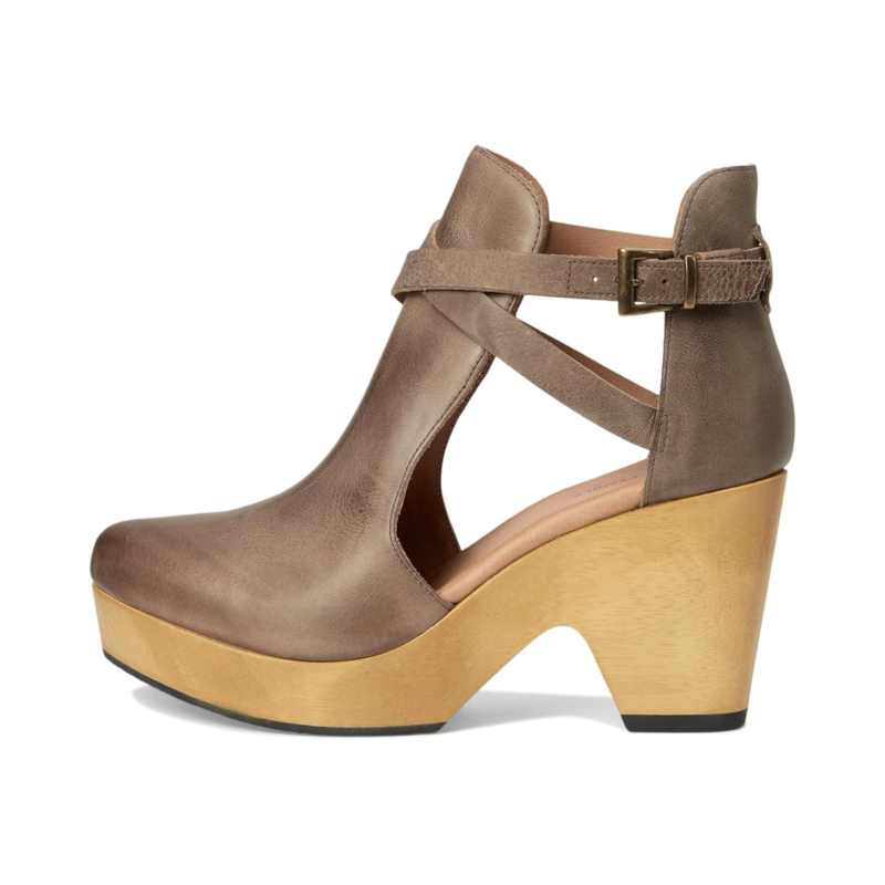 Embrace your boho spirit in the luxe Free People Cedar Leather Clogs, featuring a genuine cedar wood platform sole with an ankle cutout and strappy accents. Crafted with smooth leather uppers, it features a round toe and ankle-length silhouette accented by cutout details. An adjustable buckle at the ankle provides a secure fit.