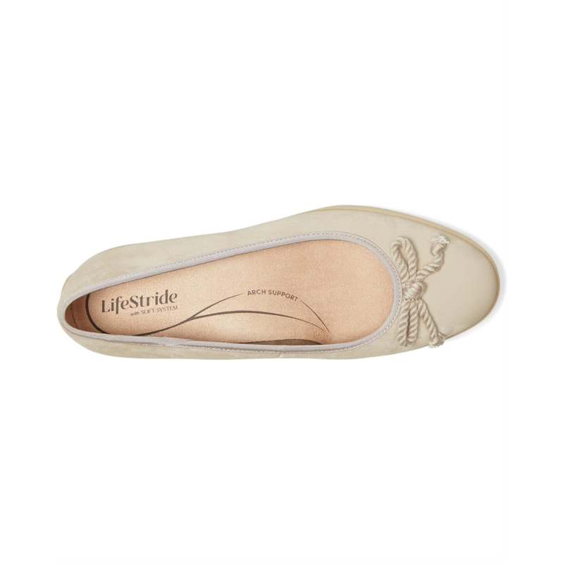 Classic with a touch of nautical, the LifeStride Maura ballet flats for women with a rope bow detail and sporty synthetic rubber outsole are the perfect addition to any look. The slip-on style flats are designed with a faux leather upper, an almond toe shape, and polyester lining. The insole with Trusted Soft System comfort technology offers unmatched cushion, support, and flexibility in every pair. Plus, it provides exceptional arch support with a contoured, cushioned insole for comfort & stability. The traction sole adds extra stability with each step.
