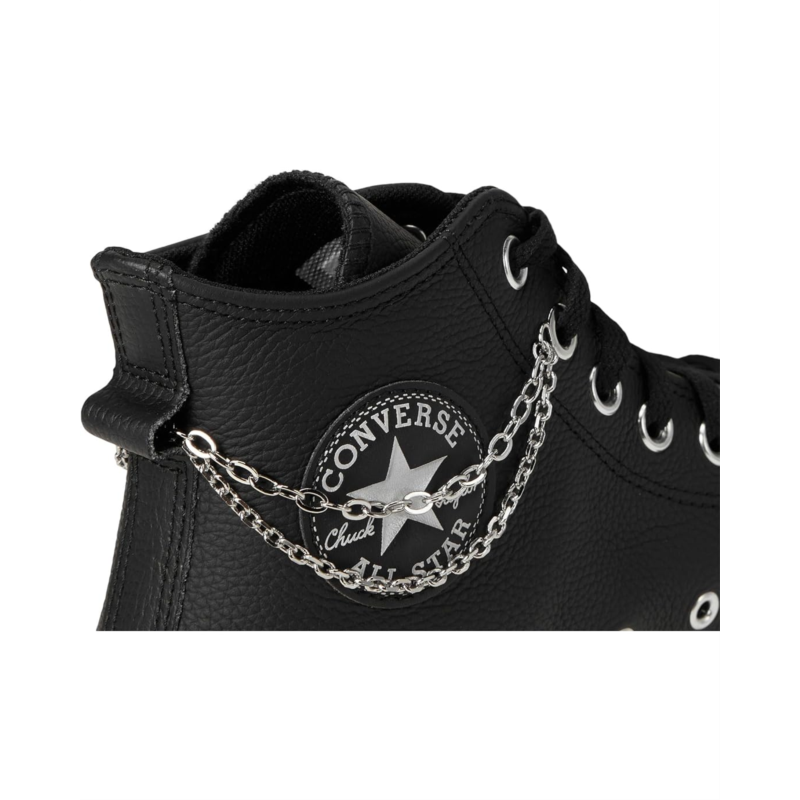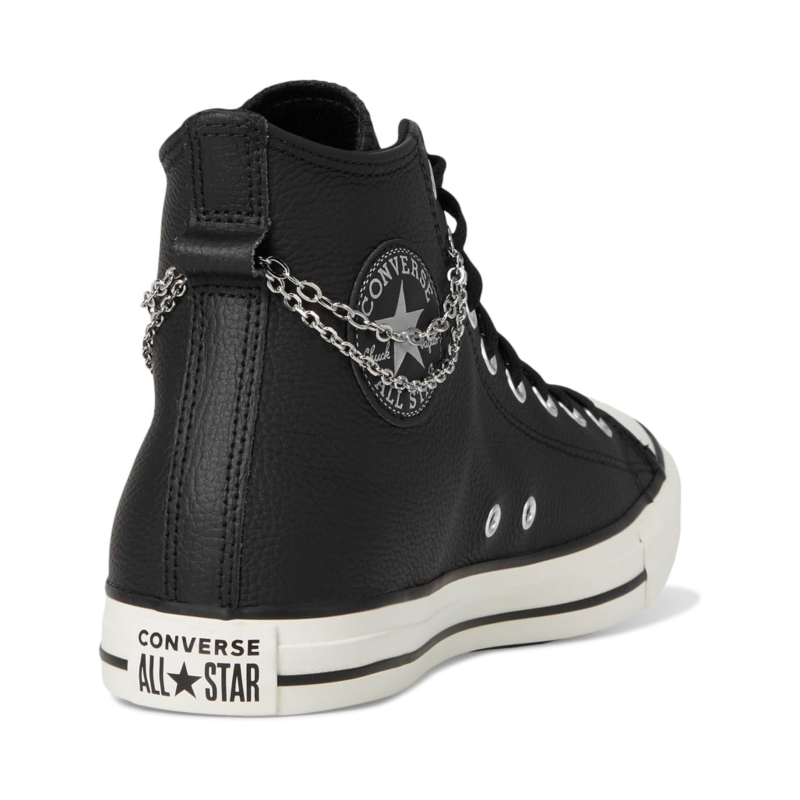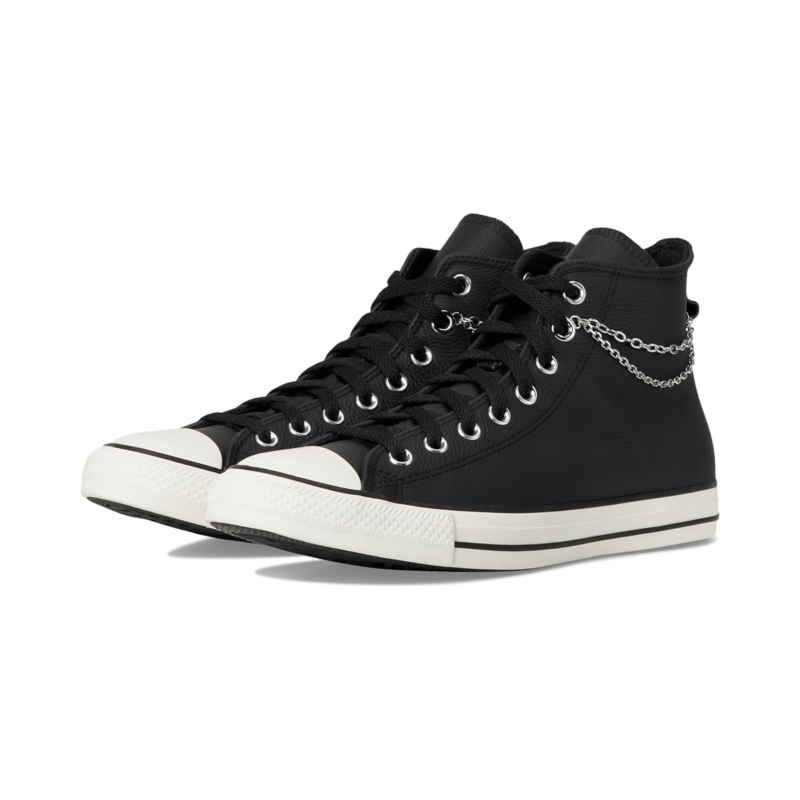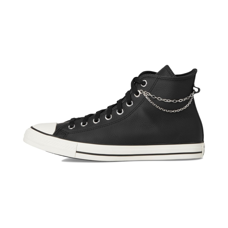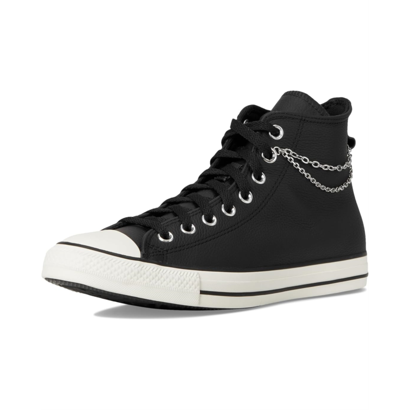 Converse Chuck Taylor All Star Chains: Lean into your punk rebellion with pitch-black leather and chains. Made from luxe, full-grain leather upper, with that classic Chucks look and attached mixed-weight chains nod to punk styling.
