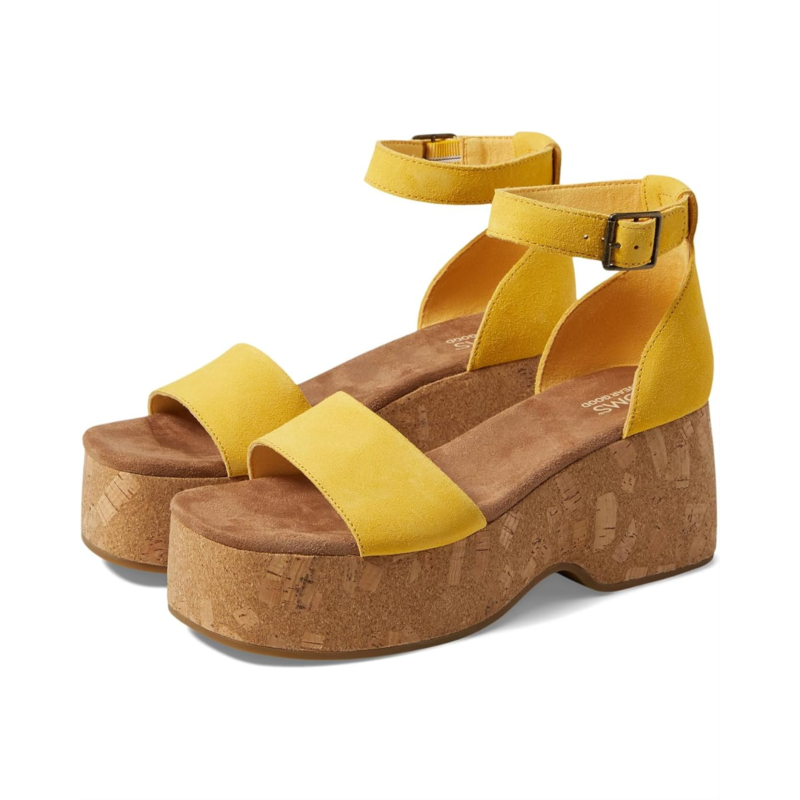 The TOMS Laila wedge heeled sandals feature adjustable ankle strap buckle closure, jute wrap midsole, and high rebound comfort OrthoLite Eco X40 Hybrid insole. Wear these heels to get an uplifted look.
