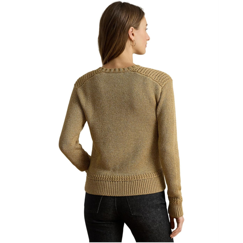 [US] POLO RALPH LAUREN Petite Metallic Cotton-Blend Crewneck Sweater