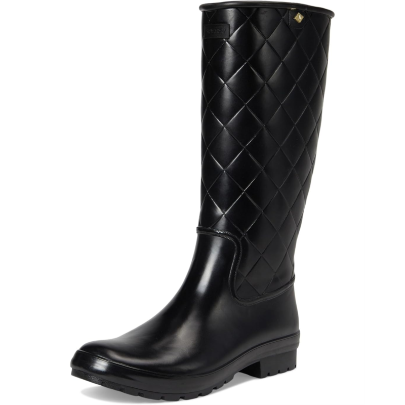 Stay dry and stylish with the Sperry Drizzle Tall Knee High Rain Boot. These lightweight rain boots are crafted from rubber, for a fully-waterproof upper and feature molded Wave-Siping technology on the outsole, for grip in wet and dry conditions. These boots have a timeless design, with quilted detailing above the ankle that''ll bring a stylish touch to your grey days.