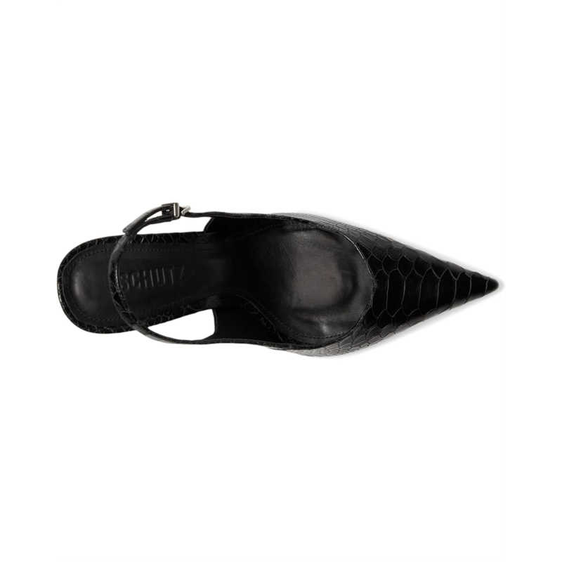 The Schutz Michelle is for the fashion risk-taker-snakeskin crafted, buckle-detailed, and sculpted with a high block heel. Its slingback cut keeps it refined, while the pointed toe brings the punch. Perfect for styling with wide-leg denim or sleek jumpsuits, this is your day-to-night stiletto alternative with real bite. Take her from the desk to happy hour drinks-she plays both.