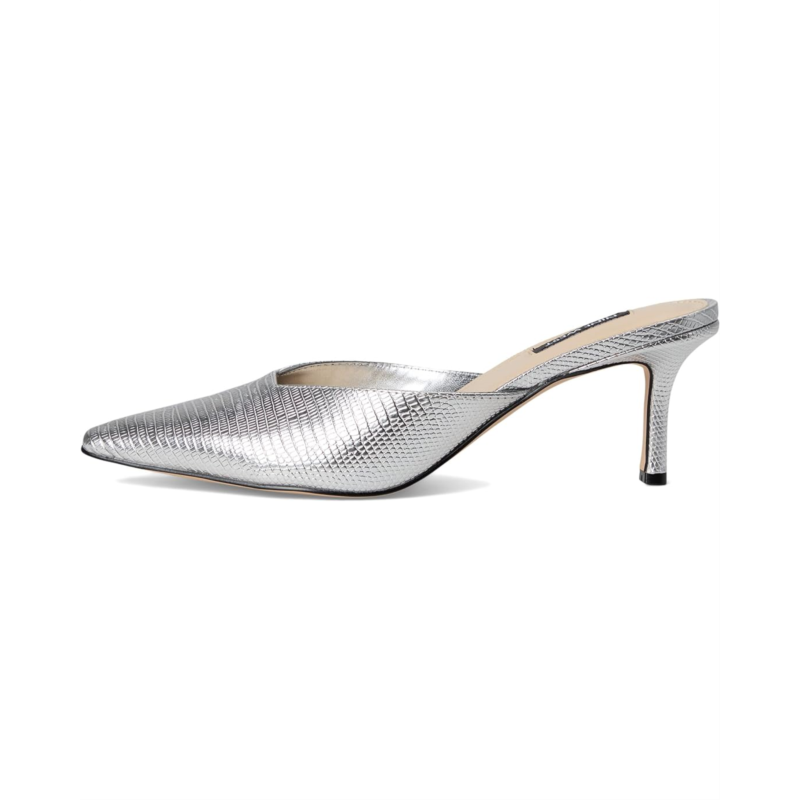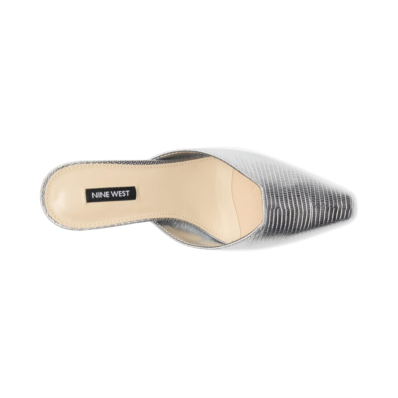 Slip into effortless elegance in the Nine West Camenla dress mules. They are made of a polyurethane upper, cushioned insole, and faux leather lining. Designed with a pointed toe silhouette, mid stiletto heels, and a sleek silhouette, these heeled sandals are the perfect wardrobe staple.