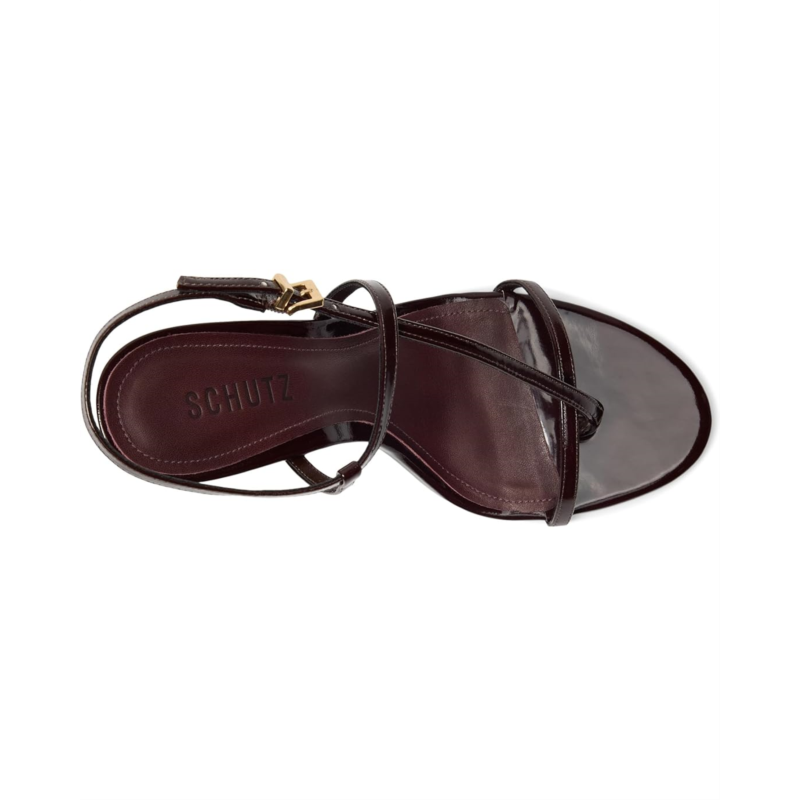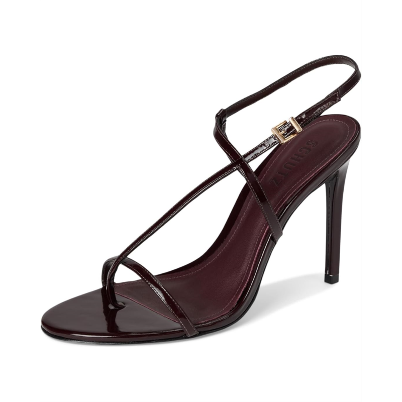 The Schutz Azure is a high stiletto sandal featuring sleek straps and a backstrap with buckle closure. It pairs with a minimalist strappy silhouette that wraps the foot with elegance.