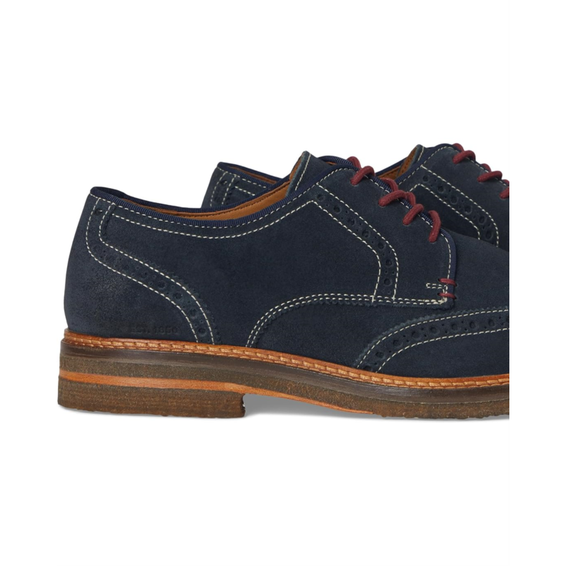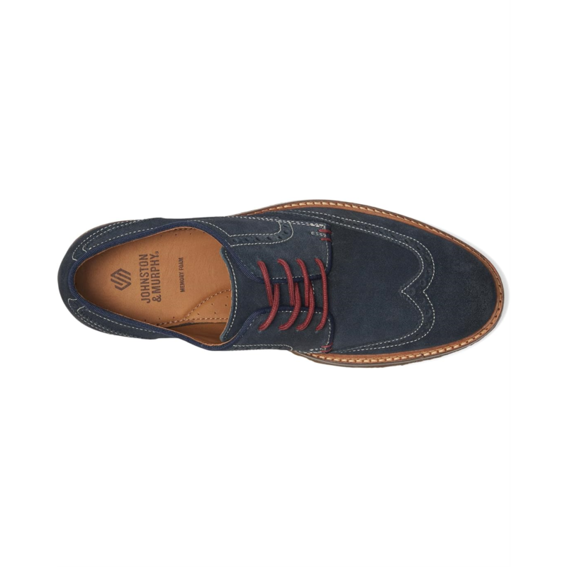 The Johnston & Murphy Calder Wingtip shoes are styled with contrast edge detail for an eye-catching twist. These dress shoes are made of a waxed suede leather upper with a moisture-wicking performance mesh lining for added breathability. Their cushioned, memory-foam footbed ensures a cushioned ride. These lace-up shoes are perfect to pair with formal outfits and styles.
