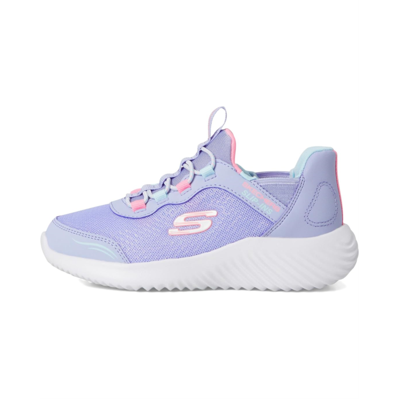 Effortless comfort comes with the SKECHERS KIDS Skechers Hands Free Slip-Ins, Bounder - Simple Cute 303585L shoes. Designed with the exclusive Heel Pillow, this slip-on style features a mesh and synthetic upper with stretch laces, Skechers Adaptive Closure, and a cushioned Skechers Air-Cooled Memory Foam insole.