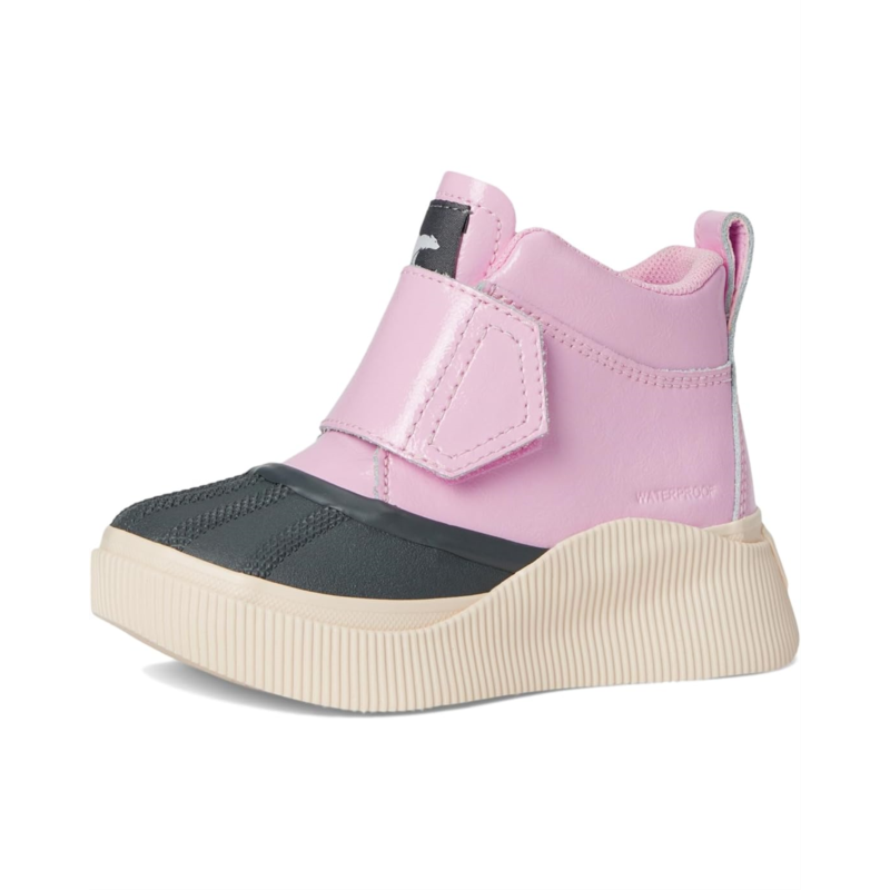 Let your little adventurers conquer puddles in confidence wearing the SOREL Kids Out N About IV Strap Waterproof boot. Designed for independent explorers, this duck boot-inspired gem features a super-easy strap closure so they can say, ''I got this!''-and actually mean it. The suede upper and cozy fabric lining wrap feet in warmth, while the molded PU Steadysole and Evertread rubber outsole provide serious grip for every jump, skip, and splash. Waterproof bootie construction and vulcanized rubber shell keep their feet dry, no matter the weather. The calf-high, closed-toe design adds extra protection for all-day play. Durable, stylish, and built for repeat adventures, this is the go-to boot they''ll reach for again and again.