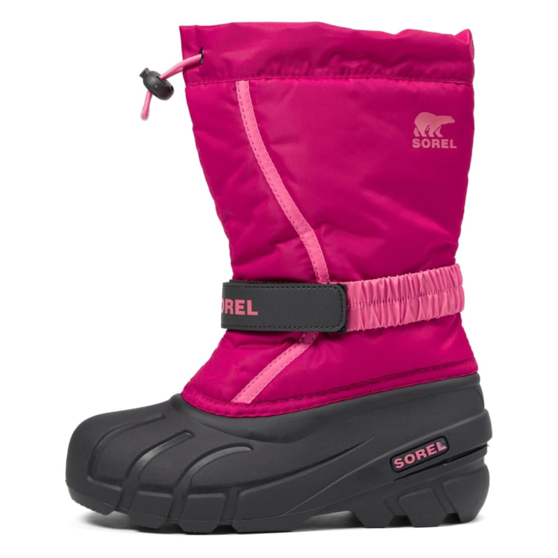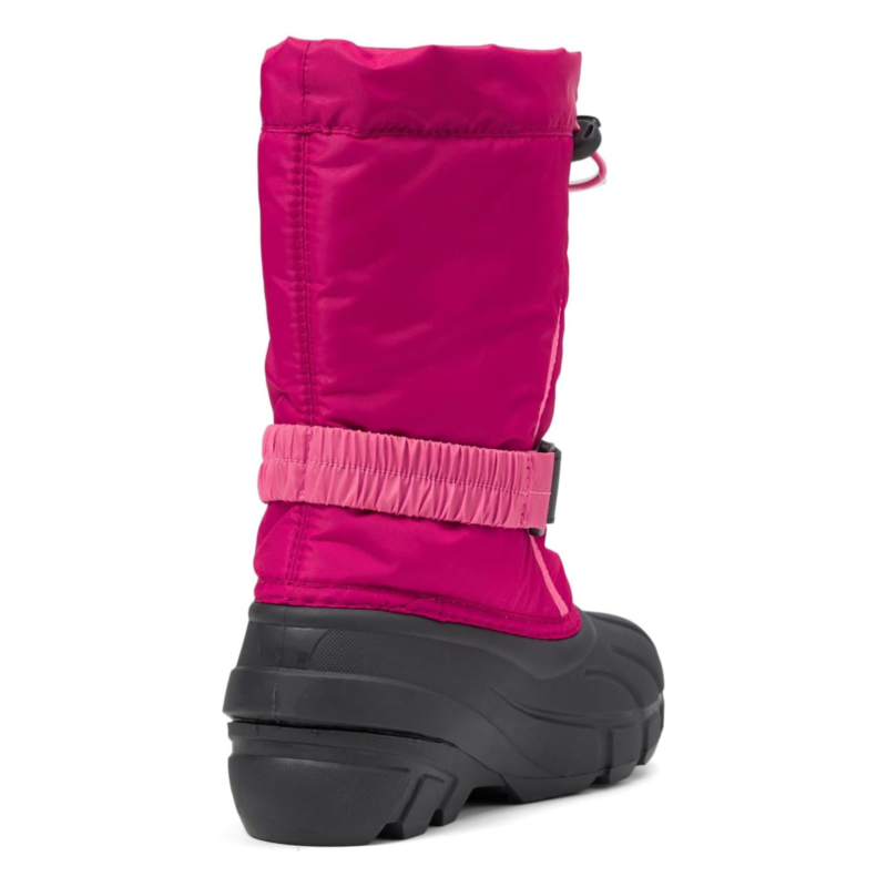Snowy adventures made easy: Conquer cold styling SOREL Kids Flurry boots, where style meets function. These high-performance boots are crafted with a durable water and wind-resistant polyurethane-backed synthetic textile upper, ensuring they keep wet conditions at bay. The built-in gaiter and barrel lock closure system, paired with a fixed elastic instep strap, provide a snug fit to keep the snow out. The removable, washable recycled felt inner boot offers unmatched warmth, while the injection-molded waterproof thermal rubber shell, combined with a multi-directional lug outsole, delivers superior traction and stability on slick surfaces. Easy on, easy off - these boots are perfect for every snowy adventure!
