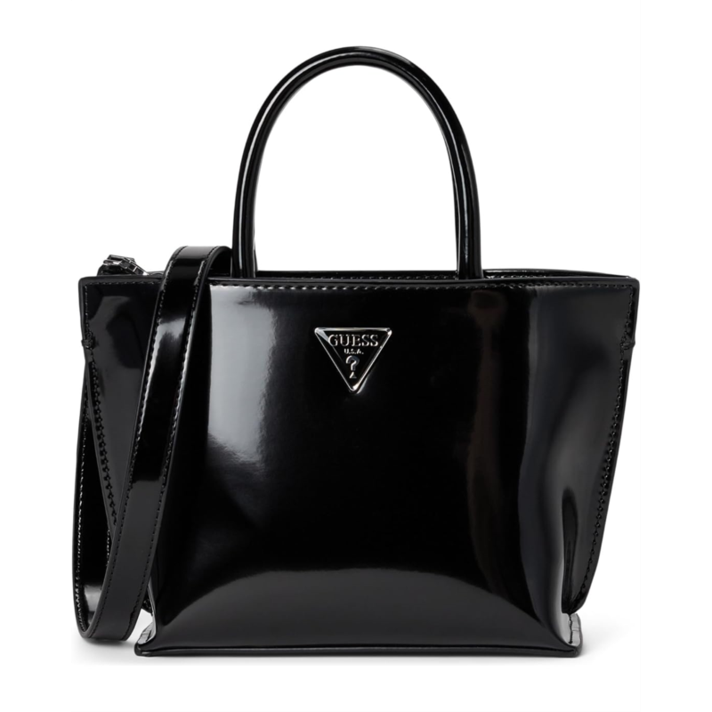 The GUESS Arnela Mini Tote blends compact style with everyday versatility. Crafted from smooth polyurethane for a sleek finish, this mini tote features a structured silhouette and signature logo patch for a polished look. A detachable crossbody strap offers hands-free convenience, while top dual handles and a zippered closure make it easy to carry essentials in style.