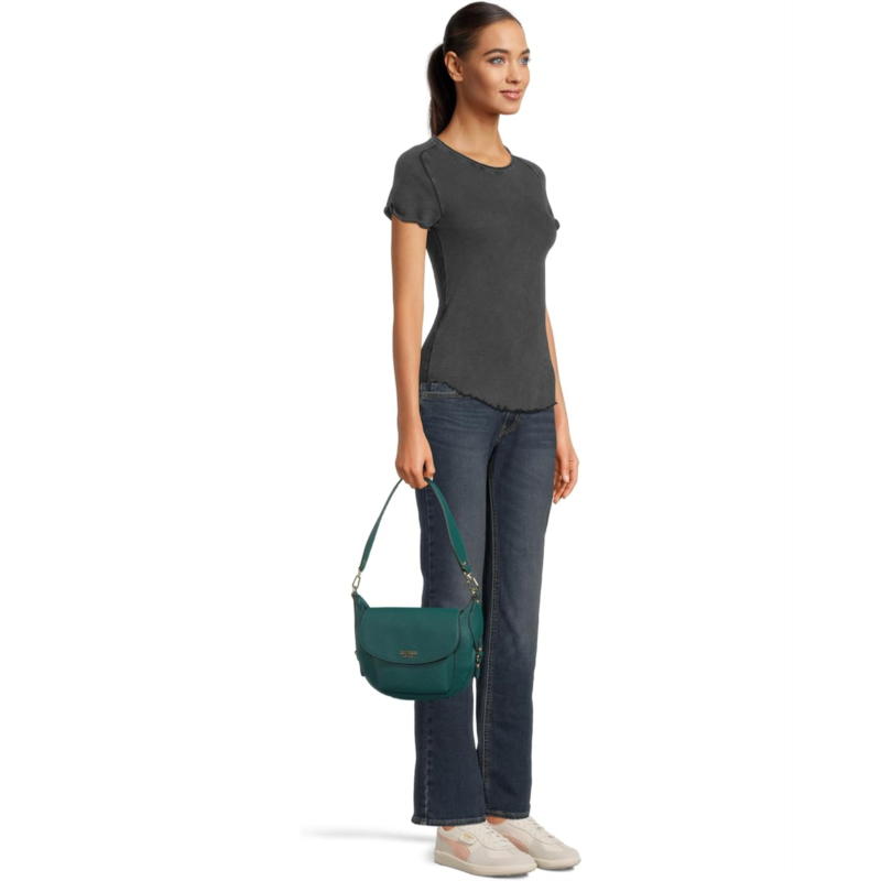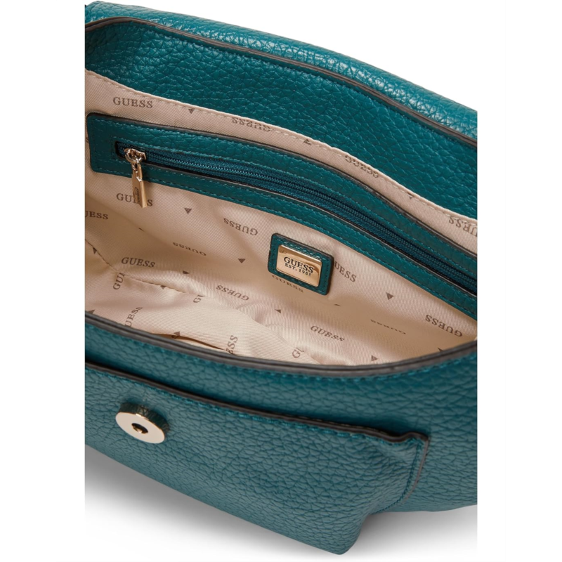 The GUESS Marsha Flap Shoulder Bag features a sleek, structured silhouette with a fold-over flap design and a removable shoulder strap that delivers effortless polish for day-to-evening wear. Crafted from polyurethane material with a textured surface, this shoulder bag features a removable and adjustable crossbody strap and a magnetic closure.