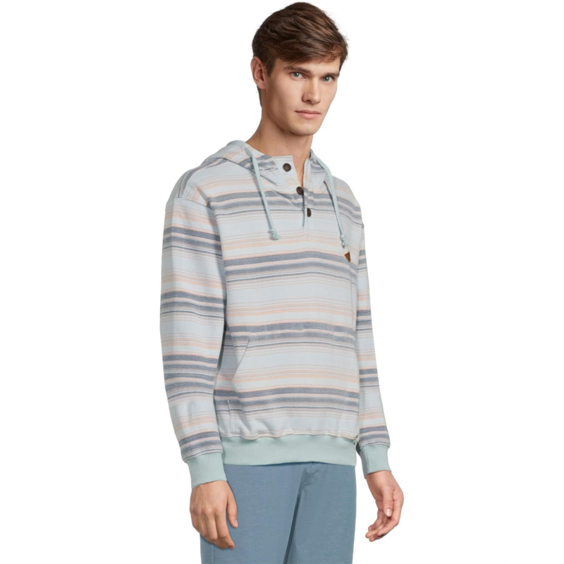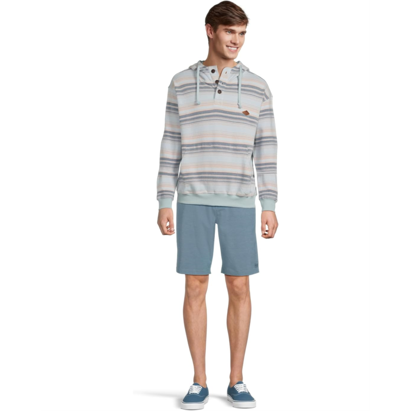 Hit the boardwalk in casual comfort in the Billabong Rancho Pullover. This pullover features an attached hood with drawstrings, button placket, long sleeves with ribbed cuffs, and a front kangaroo pocket.