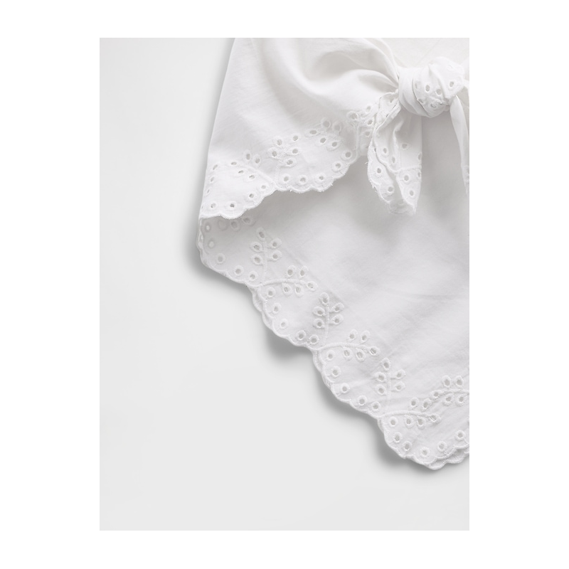 - Eyelet embroidery at edges.
