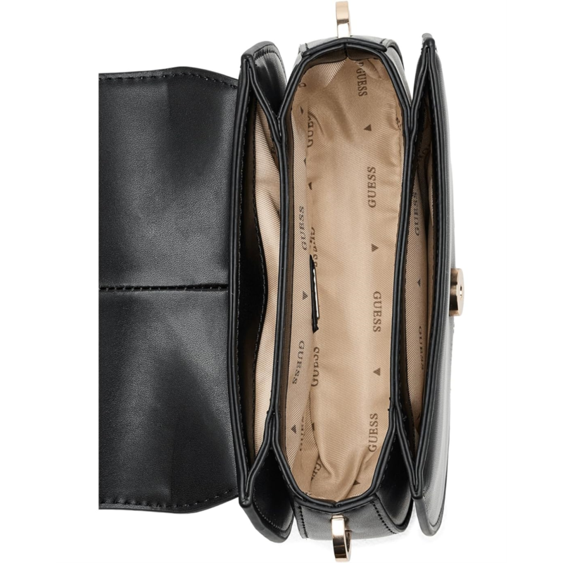 - Make a crisp impression on everybody carrying the GUESS Carrie Mini Flap Crossbody Bag. The bag comes in eco calf polyurethane construction with a removable chain and crossbody strap for easy carrying. The three internal spacious compartments keep small essentials stored, while the gold-tone hardware and brand logo detail add a stylish accent.