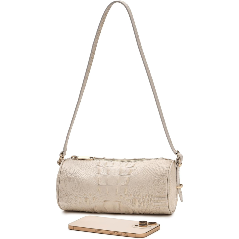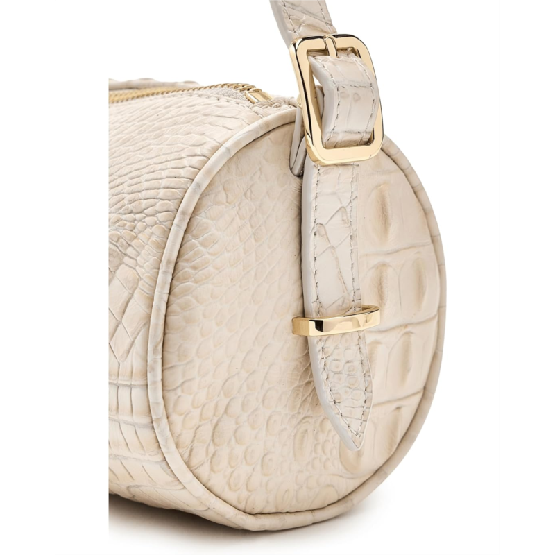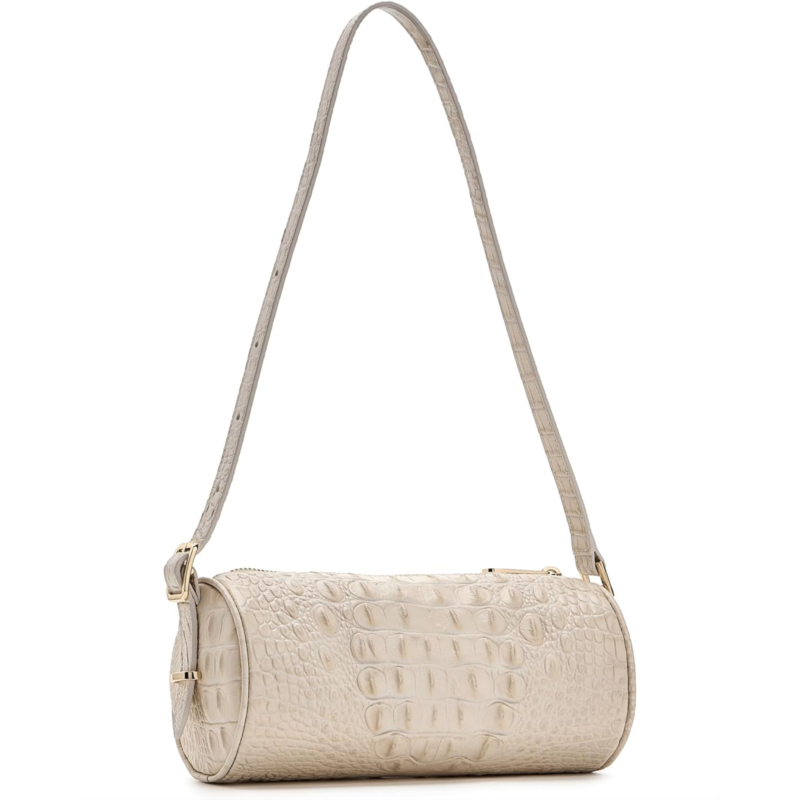 - The Brahmin Billie is an adorable barrelkorea shoulder bag made in lightweight Aldren Road leather, a casual, softer twist on the brand''s iconic croc-embossed leather. Functional modern hardware sets this style apart. The adjustable shoulder strap features Asymmetrical hardware on the side that allows for easy adjustments. A logo plaque is carefully placed on the side for low-key luxury, while the zippered top closure offers easy access. This leather purse is perfect to pair with different outfits and styles.