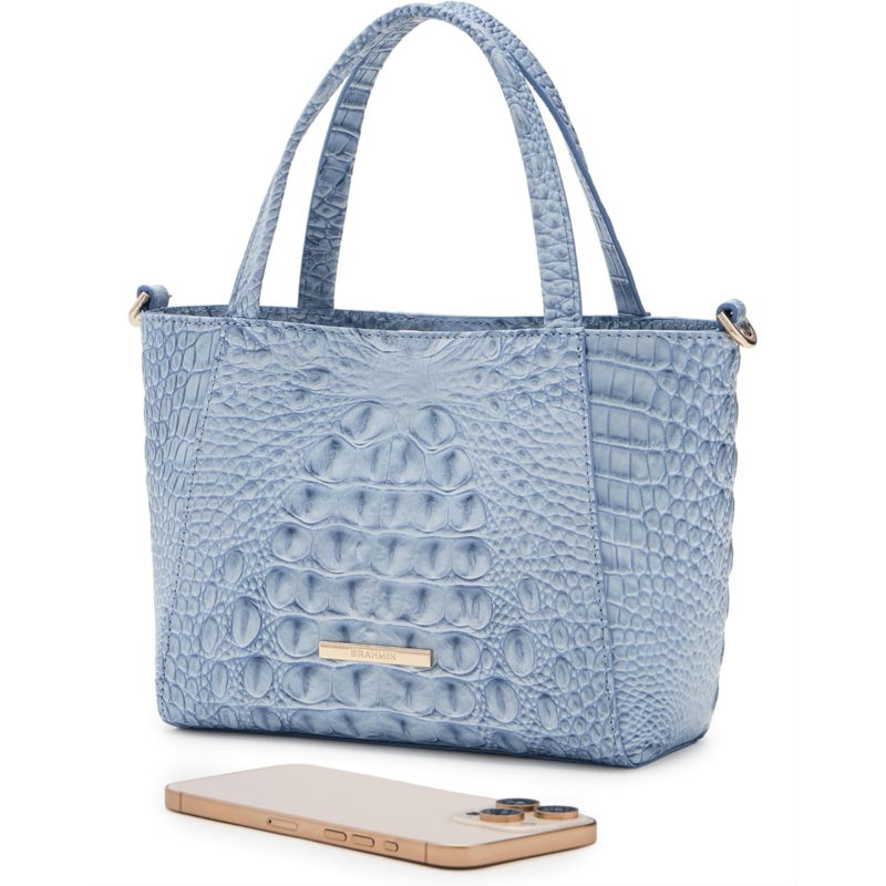 - Brahmin Small Mona is a smaller version of our go-to tote. It can be worn as a crossbody for extra versatility. The slightly more compact silhouette is ideal for lightweight luxury, while the open top keeps things ultra-easy for quick access to essentials. Interior pockets provide the perfect way to stay organized. It has a magnetic bridge closure, folded leather straps, and a detachable, adjustable crossbody strap.