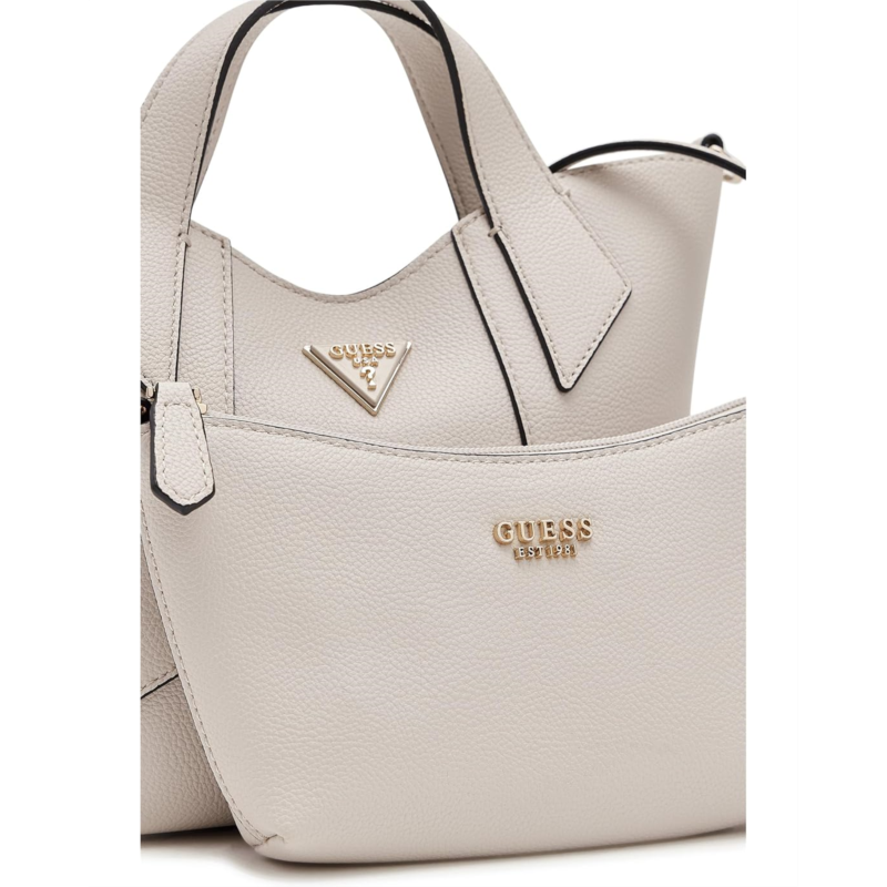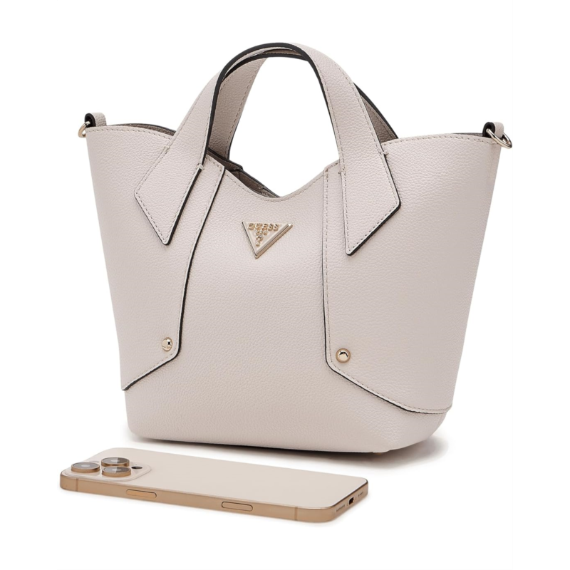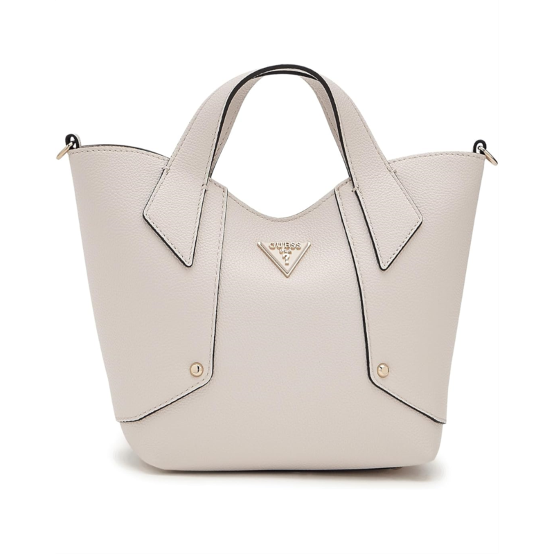 - Crafted from eco double-faced pebbled polyurethane material, the GUESS Darcy Mini Tote delivers a structured yet versatile design for everyday wear. This compact style features dual shoulder straps and a removable, adjustable crossbody strap for multiple carrying options. Inside, a removable pouch with a zippered closure keeps essentials organized and secure.