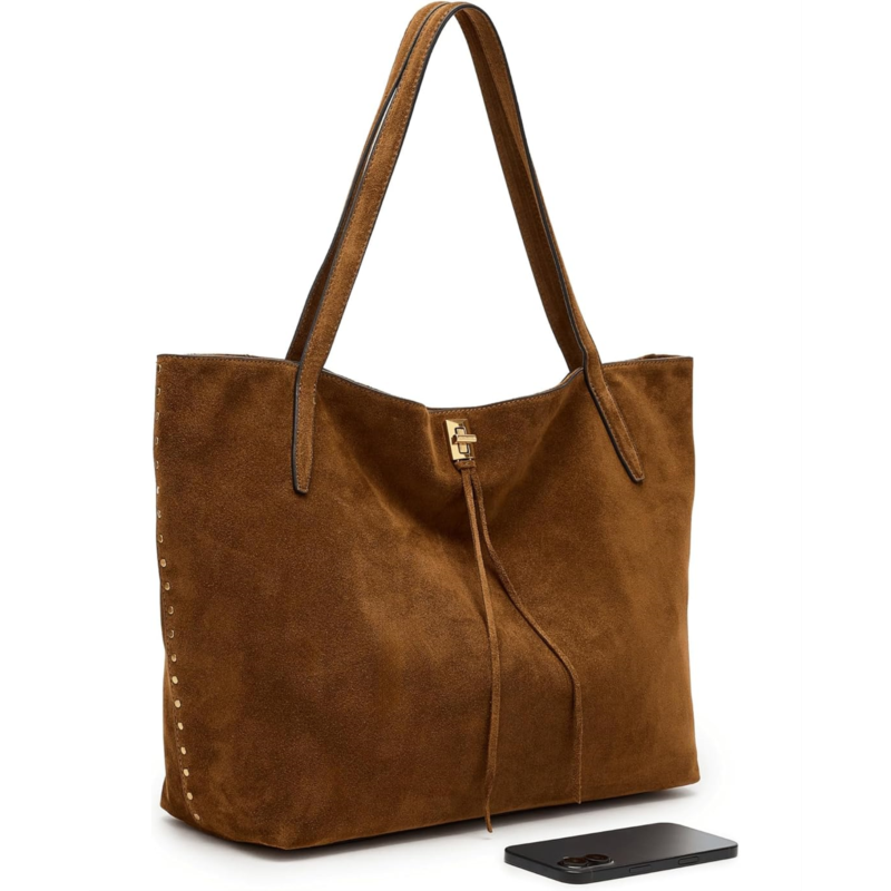 - Enjoy effortless style carrying the Rebecca Minkoff Darren Unlined Tote! This spacious tote is made from supple leather. It''s perfect for long weekends or daytime city adventures alike. Featuring dual shoulder straps for easy carrying, a turn lock closure for added security, a zippered interior back pocket for organizing your essentials, and an exterior back slip pocket for convenient access to items on the go.