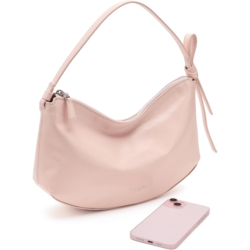 - The Kate Spade New York Loop Crinkle Patent Leather Shoulder Bag is a bold, modern accessory with a glossy finish. Crafted from leather, it features the signature looped design detail that adds sculptural interest to the silhouette. The shoulder strap offers versatile wear, while the structured shape balances standout texture with everyday functionality.