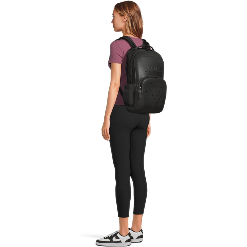 - Why get the same old backpack when you can make this one your own? Introducing the Crocs Classic Backpack, perfect for school, work, or whatever you need to ahul around. . Like all our totes and bags, its durable, spacious, and as Classic as our clogs. The best part? You can add JIBBITZ charms to make your tote one-of-a-kind, unlike any other on earth. Form, function, a charming personality PLUS your stuff? Youve got it in the bag. The Crocs backpack is durable, spacious, and has Jibbitz holes for personalization. Stylish bag with molded detailing like iconic Crocs shoes. Shop Now.