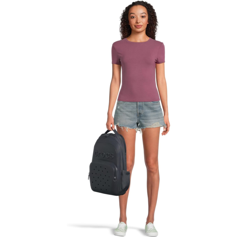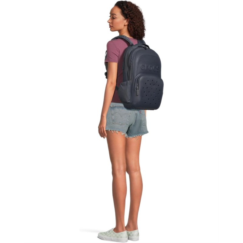 - Why get the same old backpack when you can make this one your own? Introducing the Crocs Classic Backpack, perfect for school, work, or whatever you need to ahul around. . Like all our totes and bags, its durable, spacious, and as Classic as our clogs. The best part? You can add JIBBITZ charms to make your tote one-of-a-kind, unlike any other on earth. Form, function, a charming personality PLUS your stuff? Youve got it in the bag. The Crocs backpack is durable, spacious, and has Jibbitz holes for personalization. Stylish bag with molded detailing like iconic Crocs shoes. Shop Now.