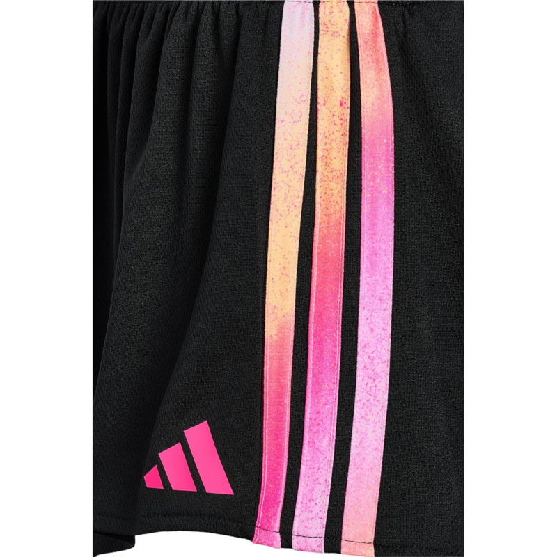 - Elevate your childs playtime choosing these vibrant adidas Kids Gradient 3S Mesh Shorts. Designed for active kids, they feature a comfortable elasticized waistband with an internal drawcord for a secure fit. The flounced hem is playful, whilst the internal bike short provides extra coverage. With a striking gradient three-stripes design, these shorts are stylish for sports or casual outings.
