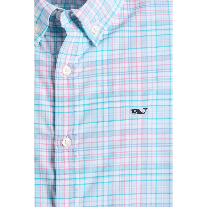 - The featherweight powerhouse, vineyard vines Plaid Featherweight Performance Shirt. Designed for boys who never slow down, this super-lightweight shirt delivers easy polish without the bulk. The crisp collared neck and clean button-front closure keep the look sharp, while long sleeves with buttoned cuffs offer a classic finish that works for school days, family outings, and everything in between. What really sets it apart? Performance that keeps up. Crafted with moisture-wicking, quick-drying fabric, this shirt helps him stay cool, dry, and comfortable from morning to night. Built-in stretch allows freedom of movement, so running, climbing, and exploring feel effortless.