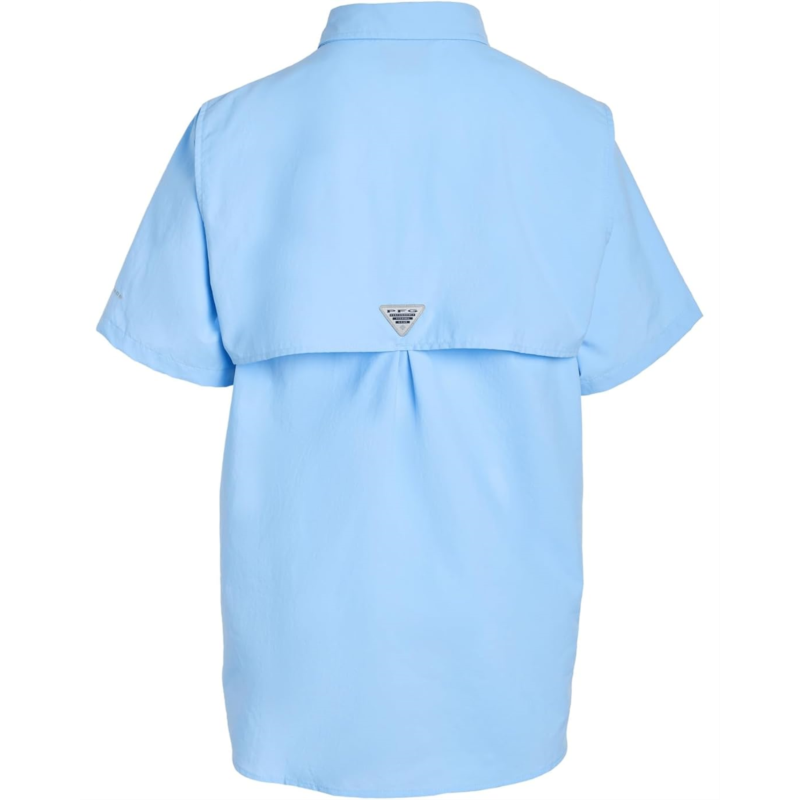 - Adventure-grade gear for the next generation: The Columbia Kids PFG Bahama II Short Sleeve Shirt blends professional angling tech with the durability needed for all-day play. Crafted from lightweight nylon, this angler-friendly shirt dries fast to keep them comfortable from dock to deck. Built-in UV protection helps block harmful rays, so they can stay outside longer with confidence. The classic collared neck and button-front closure deliver timeless style with easy wear, while short sleeves keep things breezy on warm days. Two flap chest pockets offer handy storage for small treasures, and the clever rod-holder loop frees up their hands to tie knots, bait hooks, or grab a quick snack between catches.
