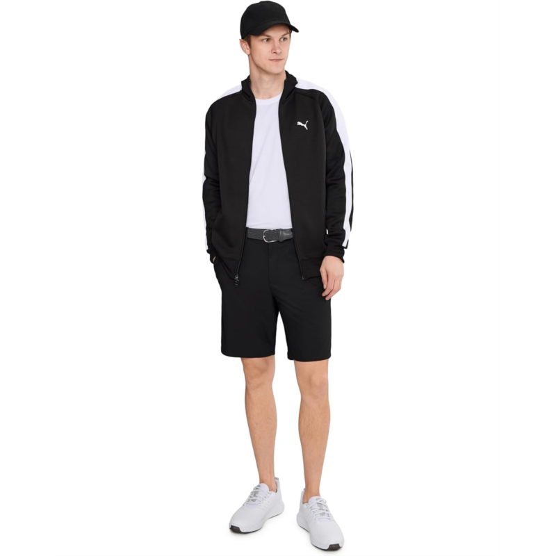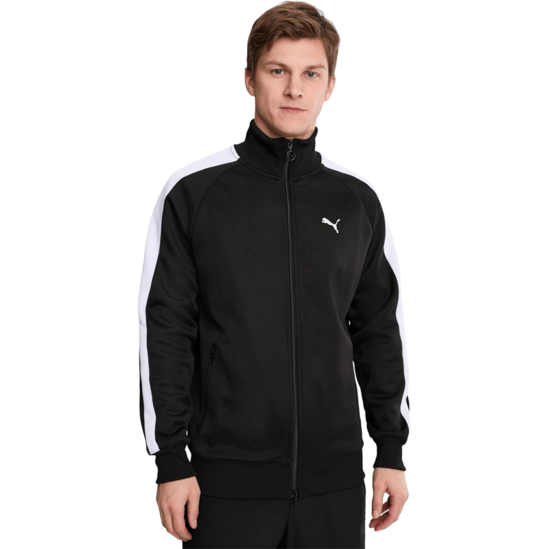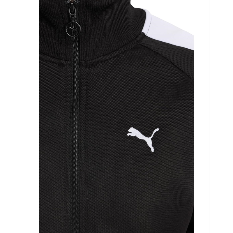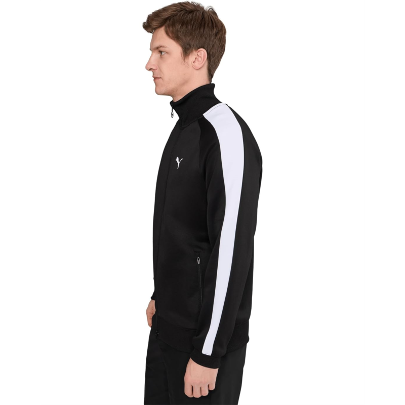 - Experience the legacy with this PUMA T7 Always On Track Jacket featuring T7 panel inserts along sleeves, iconic 7cm stripes, and an embroidered PUMA Cat logo. With a two-way zippered front closure and ribbed cuffs, this zip-up jacket is perfect for both city streets and training grounds. It is styled with long sleeves and a ribbed, straight hem. The sleek stand-up collar adds a modern and fashionable touch to this versatile jacket, offering style and practicality for everyday wear, while the two zippered side pockets are perfect for storing your keys, phone, or other essentials while on the go. It is made with at least 50% recycled material. Offering a classic fit thats neither too tight nor too loose, embrace the heritage and make a statement with this PUMA jacket.